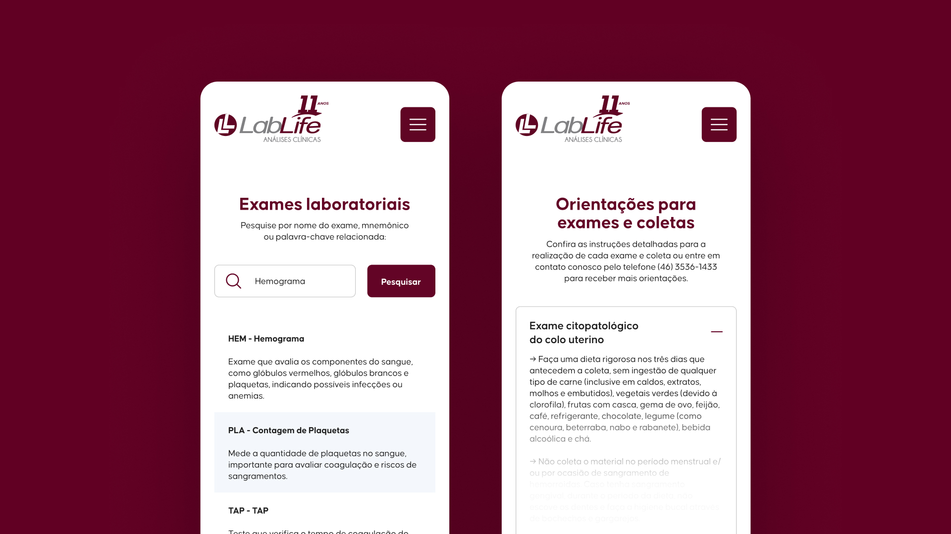 O novo website do LabLife foi criado para oferecer uma experiência acolhedora e segura em cada interação. A plataforma reflete a confiança de quem entende que saúde é feita de rotina, prevenção e proximidade. Mais do que informar, o site acolhe, aproximando o laboratório de seus pacientes com clareza, leveza e um toque humano em cada serviço prestado.